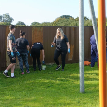 They were here all morning and did an phenomenal job, cleaning, painting and staining a long length of fence in our playground and the Mulberry Garden.